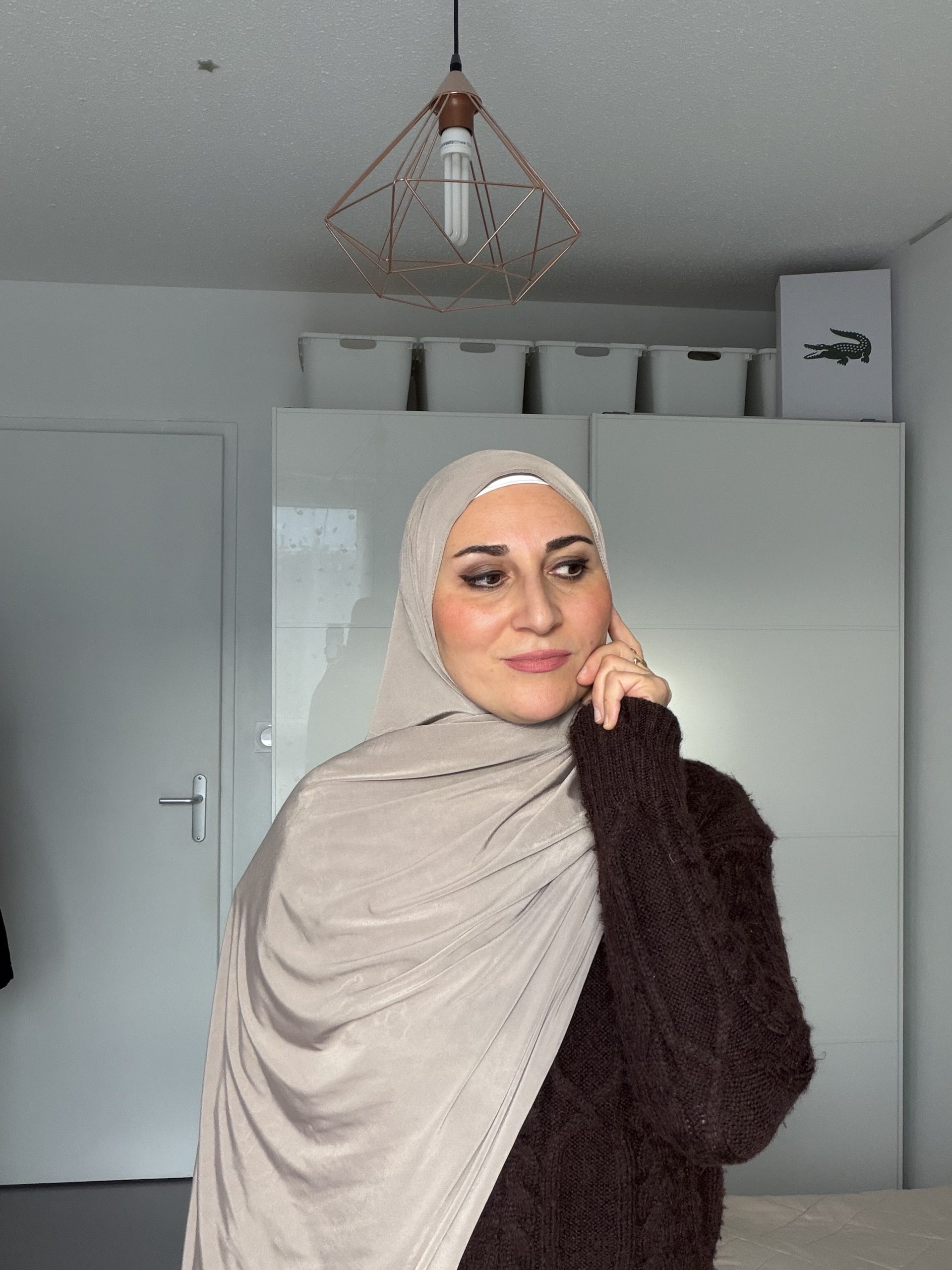 Ce foulard en jersey liquide allie douceur élasticité et maintien. Sa matière fluide et soyeuse respecte les cheveux et révèle un léger éclat scintillant à la lumière.
