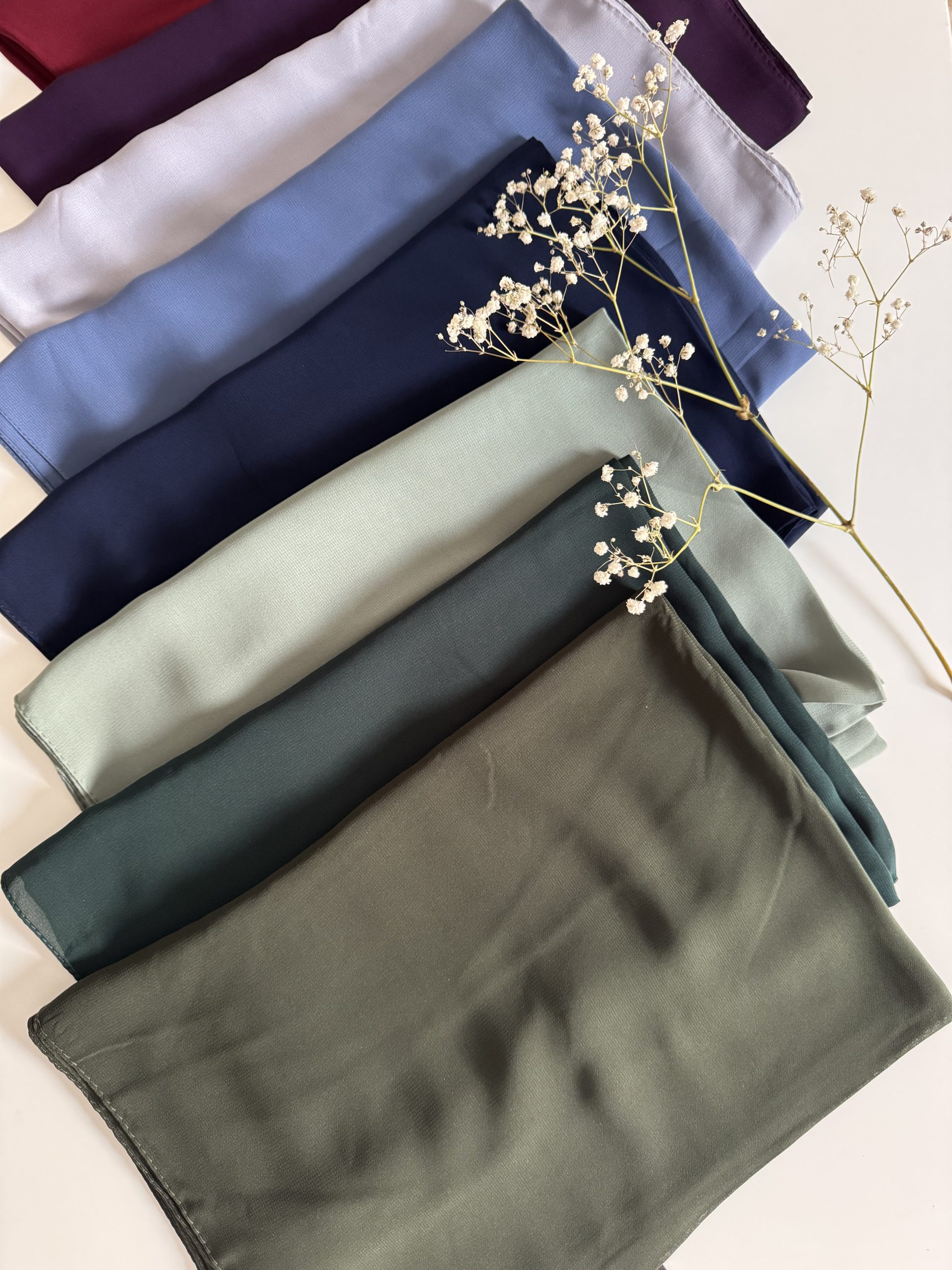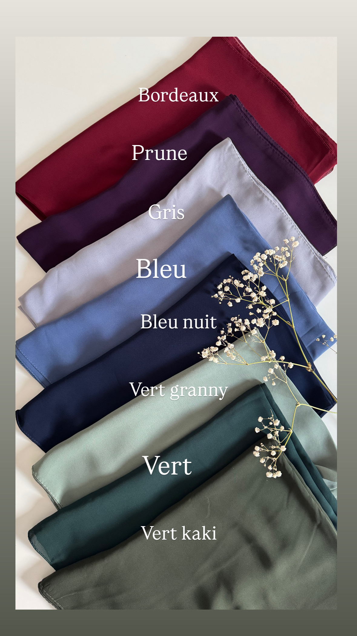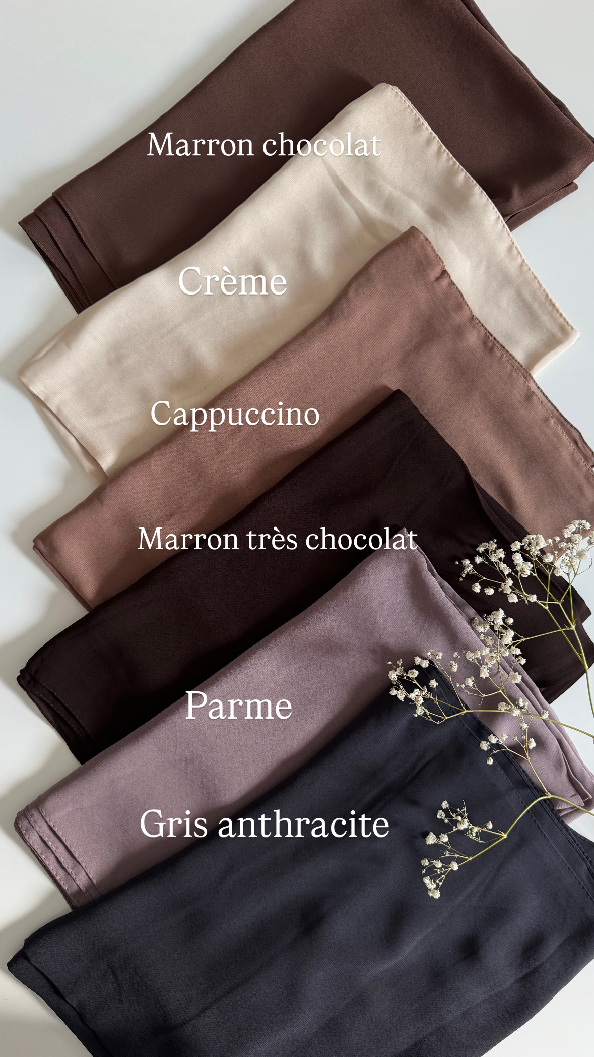 Hijab en mousseline très soyeuse, fluide, opaque qui ne glisse pas du tout et infroissable